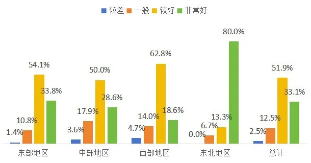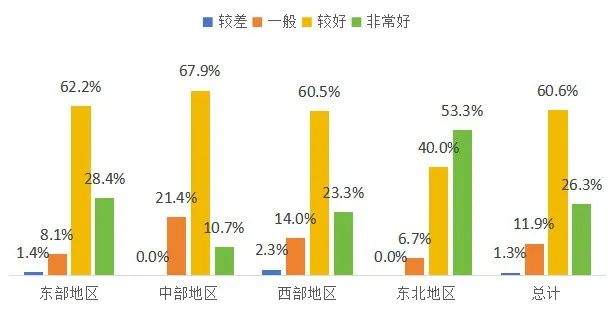 工作人員整體服務(wù)態(tài)度較好,政策熟悉度較高。總體看,超過85%的熱線服務(wù)態(tài)度較好,對咨詢的問題能正確回應(yīng),耐心解答,對政策和業(yè)務(wù)流程講解清晰。相較而言,東部、東北地區(qū)工作人員服務(wù)態(tài)度、政策熟悉度較好。仍存在部分咨詢熱線接聽人員沒耐心、不清楚辦理流程等情況。