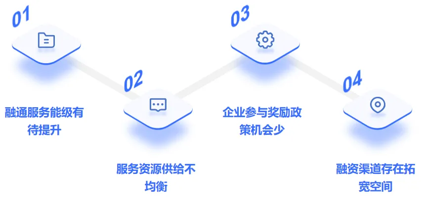 產(chǎn)業(yè)園區(qū)服務(wù)功能局限,過度依賴傳統(tǒng)銀企對接模式,股權(quán)融資、政策性融資工具(如專精特新專項貸)等多元渠道整合能力不足,融資路徑狹窄;信息匹配低效,未建立專精特新企業(yè)技術(shù)價值評估與金融機構(gòu)風險偏好動態(tài)匹配的數(shù)字化平臺,導致輕資產(chǎn)、高成長型企業(yè)難以突破銀企之間“技術(shù)看不懂、風險算不清”的信息鴻溝。