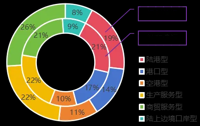 從類型看,規(guī)劃樞紐包括六類,分別是41個陸港型、30個港口型、23個空港型、47個生產(chǎn)服務型、55個商貿(mào)服務型和16個陸上邊境口岸型。按樞紐功能實現(xiàn)方式的差異性,分為物流功能模式和產(chǎn)業(yè)發(fā)展模式,前者依托地區(qū)交通稟賦和主通道網(wǎng)絡,包括陸港型、港口型和空港型;后者按照地區(qū)經(jīng)濟發(fā)展路徑,包括生產(chǎn)服務型、商貿(mào)服務型和陸上邊境口岸型。