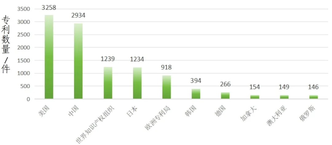 圖1 eVTOL領(lǐng)域?qū)@暾?qǐng)量排名前十的國(guó)家和組織(截止到2024年)