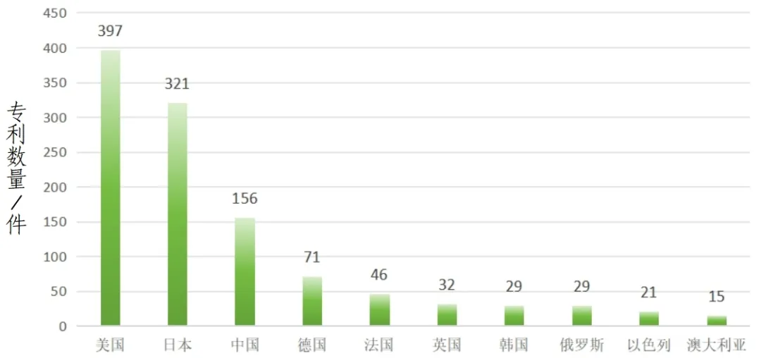圖2 eVTOL領(lǐng)域PCT申請(qǐng)量排名前十的國(guó)家(截止到2024年)