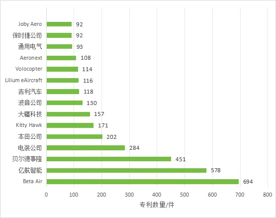 圖5 全球eVTOL領(lǐng)域?qū)@暾?qǐng)量前十五位的申請(qǐng)人(截止到2024年)