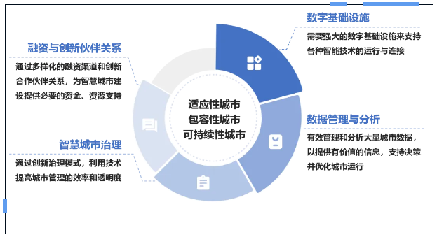 國際上,智慧城市建設主要關注包容性、可持續性與適應性三個方面,強調智慧城市建設對于提高社會包容性、促進城市可持續發展以及提高城市韌性、快速應對挑戰的重要性。影響智慧城市建設的關鍵驅動因素包括數字基礎設施、數據管理與分析、融資與創新伙伴關系及智慧城市治理。