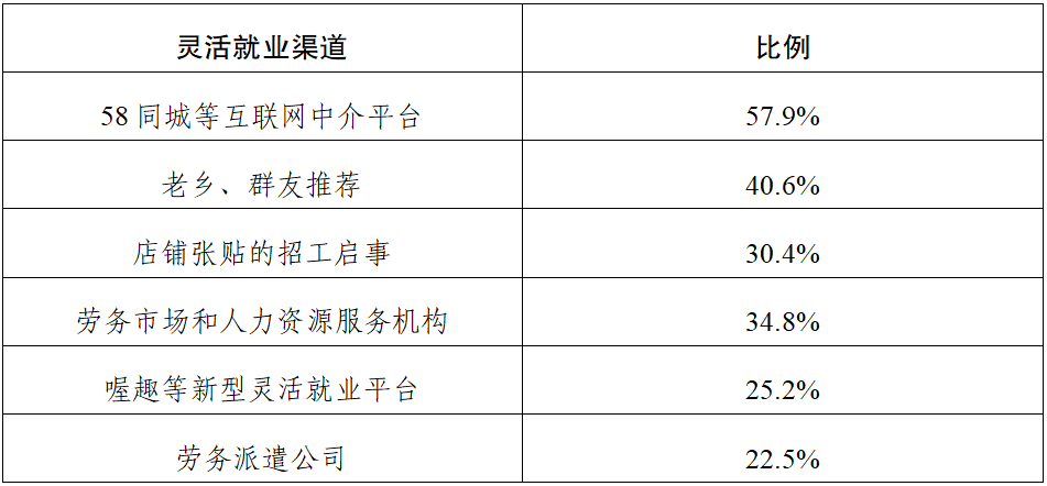 就業(yè)渠道趨于多樣化。據(jù)美團(tuán)研究院對商戶及從業(yè)者的調(diào)研結(jié)果發(fā)現(xiàn),勞動者的就業(yè)渠道呈現(xiàn)多樣化、網(wǎng)絡(luò)化趨勢,57.9%傾向互聯(lián)網(wǎng)中介平臺,40.6%傾向老鄉(xiāng)、群友推薦,25.2%傾向新型靈活用工平臺(表1)。此外,企業(yè)間合作也帶來人力資源的靈活流動,如盒馬通過“共享員工”形式租用西貝等餐飲行業(yè)人員,在疫情期間助力餐飲業(yè)人員穩(wěn)定就業(yè),緩解自身運(yùn)力緊張。