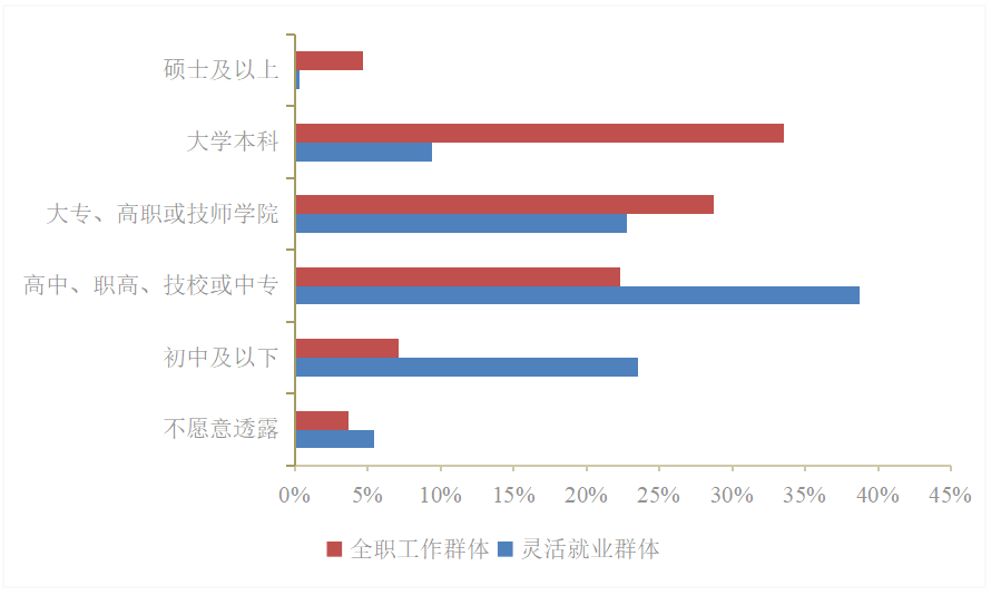 圖 2 平臺靈活就業(yè)與全職工作群體學(xué)歷分布
