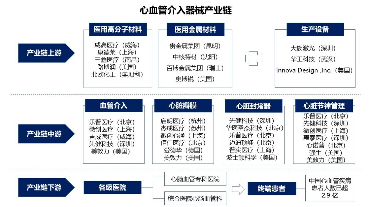 心血管介入器械產業(yè)鏈主要分為三個環(huán)節(jié):