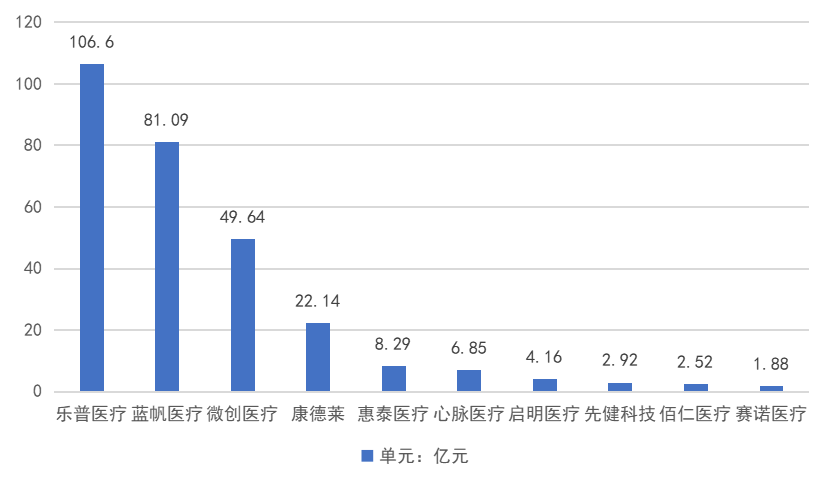 圖8 2021年國產心血管介入器械公司營業(yè)收入排名